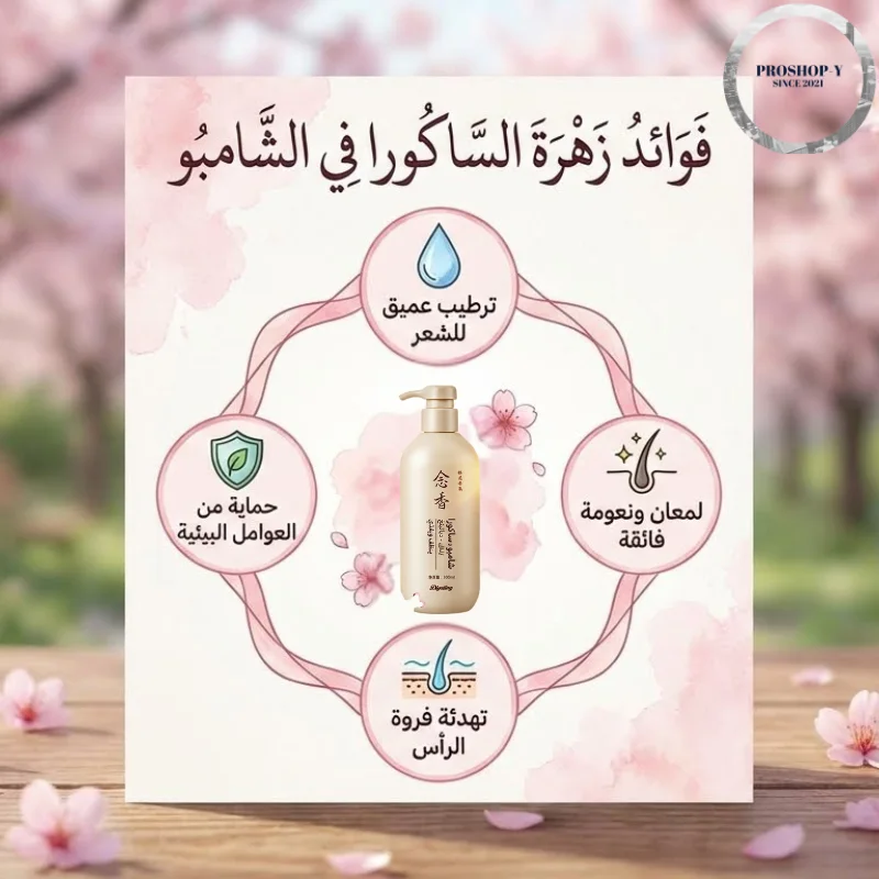 1️⃣ شامبو الساكورا → يهيّئ الشعر ويجعل فروة الرأس صحية