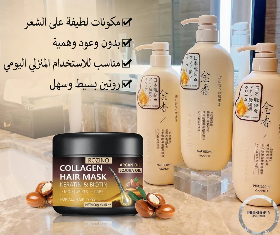 روتين متكامل للعناية بالشعر شامبو الساكورا + ماسك الأرغان بالكولاجين