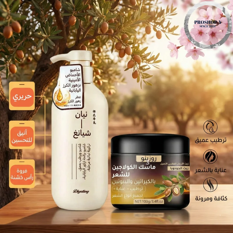 🧴 شامبو الساكورا + ماسك الأرغان بالكولاجين
